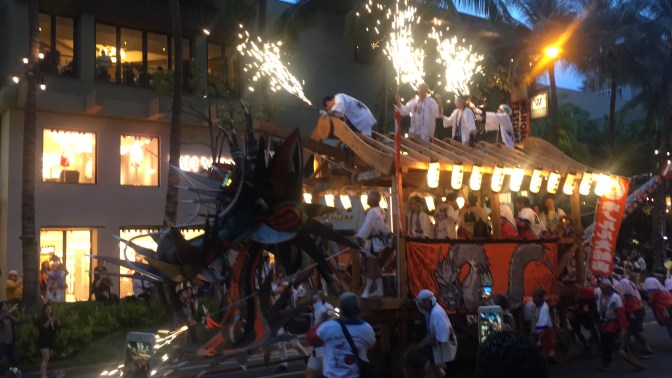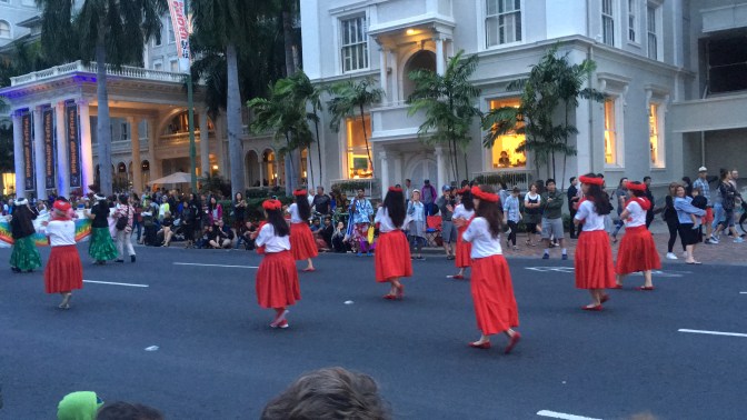 Upon arriving at our apartment building, we met up with the property manager and her sister who showed us around our cute new little place. They mentioned that there was a cultural festival going on near Waikiki beach, and that there would be a parade and fireworks later in the evening if we wanted to check it out. With that, we threw our luggage in the bedroom and set out on foot toward Waikiki! I guess it doesn’t hurt being a quarter mile from the beach. 😉