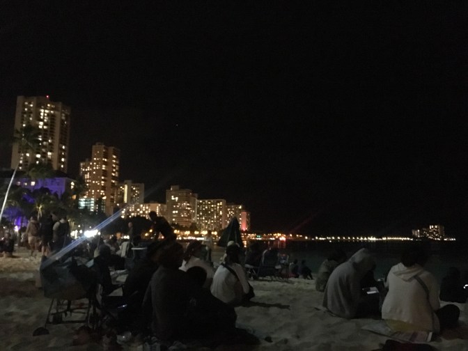 The beach was packed with families waiting for the fireworks show. According to our property manager, the fireworks had been shipped in from Japan, which made the anticipation extra exciting! We still had about an hour before they were to start, so we found a spot on the sand and sat down. I don’t know what exactly came over me, maybe jetlag, but the sand was so soft and beach weather so calming, I laid right down and took a nap. A few minutes before show time, Danny woke me up, and as I sat up and looked around I noticed the crowds had probably more than doubled since I fell asleep! Everyone and their cousins were there to watch this display.