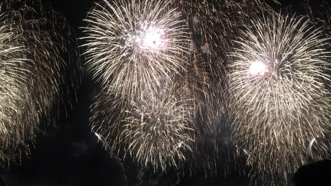 Show time. Fireworks started firing from one boat. They were so close! It was so pretty watching them not only burst in the sky in syncopation with the music, but also seeing how they lit up the sea beneath. They went on for a while, and at one point we thought they might be done. NOPE! Fireworks starting going off from THREE boats now! You know that shout Maui does in the movie Moana? There was a lot of that going on. People ‘oohed’ and ‘aahed’ in roars! We felt like we were surrounded, like being in a snow globe of fireworks! They were non-stop, they were AMAZING, they were THE BEST FIREWORKS WE HAD EVER SEEN!!! 10/10 would watch again. Our pictures don’t even begin to do them justice.