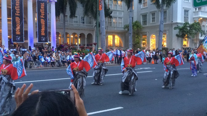 Upon arriving at our apartment building, we met up with the property manager and her sister who showed us around our cute new little place. They mentioned that there was a cultural festival going on near Waikiki beach, and that there would be a parade and fireworks later in the evening if we wanted to check it out. With that, we threw our luggage in the bedroom and set out on foot toward Waikiki! I guess it doesn’t hurt being a quarter mile from the beach. 😉