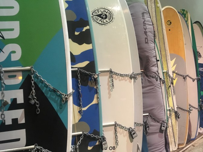 People cheered like mad at the end! Quickly recognizing the crowds we would all have to face, the whole beach seemingly stood up all at once in attempts to make an exit. Instantly, we were penguins. A giant colony of waddling penguins. All trying to funnel into the surfboard alleyway to get back home.
