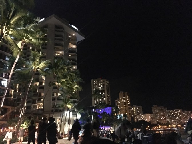 The beach was packed with families waiting for the fireworks show. According to our property manager, the fireworks had been shipped in from Japan, which made the anticipation extra exciting! We still had about an hour before they were to start, so we found a spot on the sand and sat down. I don’t know what exactly came over me, maybe jetlag, but the sand was so soft and beach weather so calming, I laid right down and took a nap. A few minutes before show time, Danny woke me up, and as I sat up and looked around I noticed the crowds had probably more than doubled since I fell asleep! Everyone and their cousins were there to watch this display.
