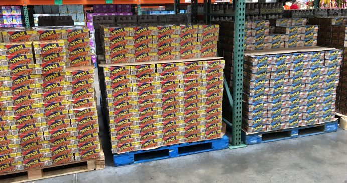 Now, it is no mystery that buying food in Hawaii is SUPER expensive. Thankfully, we got a tip from a couple of Danny’s co-workers that Costco is the way to go, as prices are pretty much the same no matter where you go. Thank you Lord! So the first thing we did on our hunt for food was hit up Costco for some groceries, as well as some cheap and delicious hot dogs and pizza slices. You just can’t go wrong with Costco lunch. It was fun to see all of the different products they had in the Honolulu Costco that you would never find in Arizona. Most notable of these, was the massive quantities of Spam. Pallets and pallets of Spam.