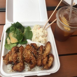 For lunch one day we went on a search for a classic Hawaiian plate lunch. A plate lunch usually consists of two scoops of white rice, macaroni or potato salad, and an entrée of some sort like chicken or fish. After some wandering and some googling, we found this neat little place called Sam’s, tucked away not too far from us. It was almost like an alleyway turned urban outdoor patio. They had awesome homemade pineapple tea, called “Plantation Tea”, and those plate lunches? Shoot, we could eat them every day! Danny got the garlic shrimp and I went with teriyaki chicken. So yummy!
