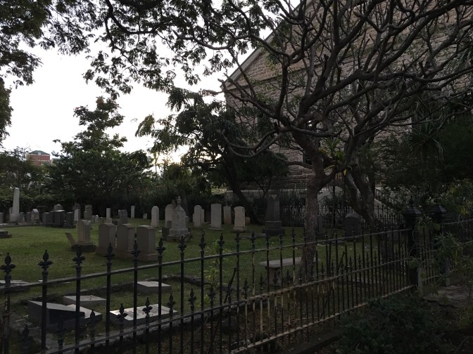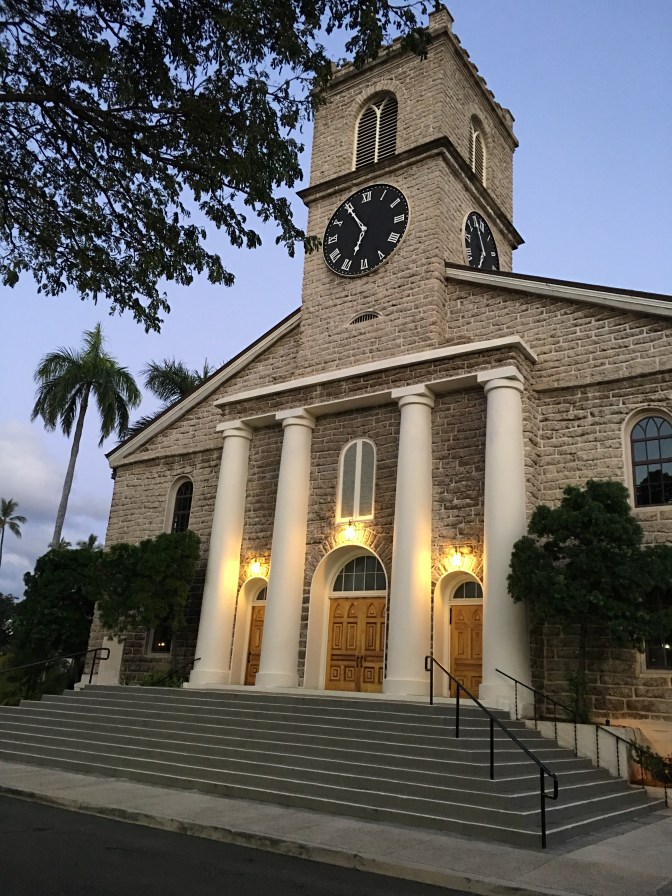 That evening we planned to attend a Hawaiian acapella concert in honor of Prince Kuhio that was going to be held at Kawaiaha‘o Church. The church landscape was beautifully lush, even the cemetery was surrounded by greenery and just asking you to adventure in. Is it just us, or does this remind you of getting in line for the Haunted Mansion ride at Disneyland? We felt excited!